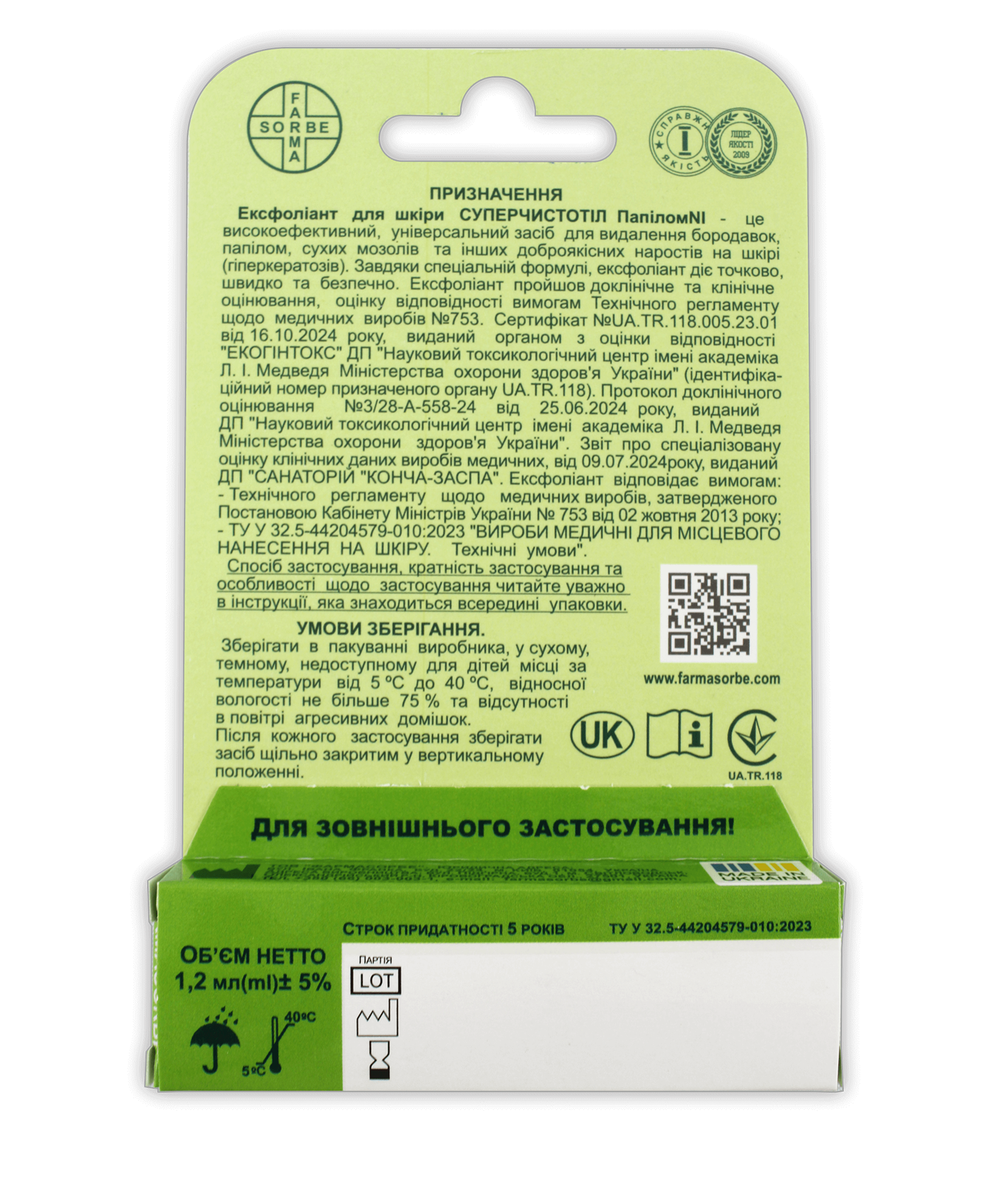 Ексфоліант для шкіри СУПЕРЧИСТОТІЛ Папілом Ni 1,2 мл